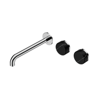 Nero Serenity Wall Basin Set 220mm Offset Spout With Marquina Black Handle Chrome