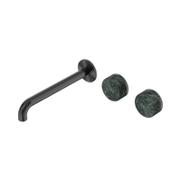 Nero Serenity Wall Basin Set 220mm Offset Spout With Verde Alpi Handle Gunmetal