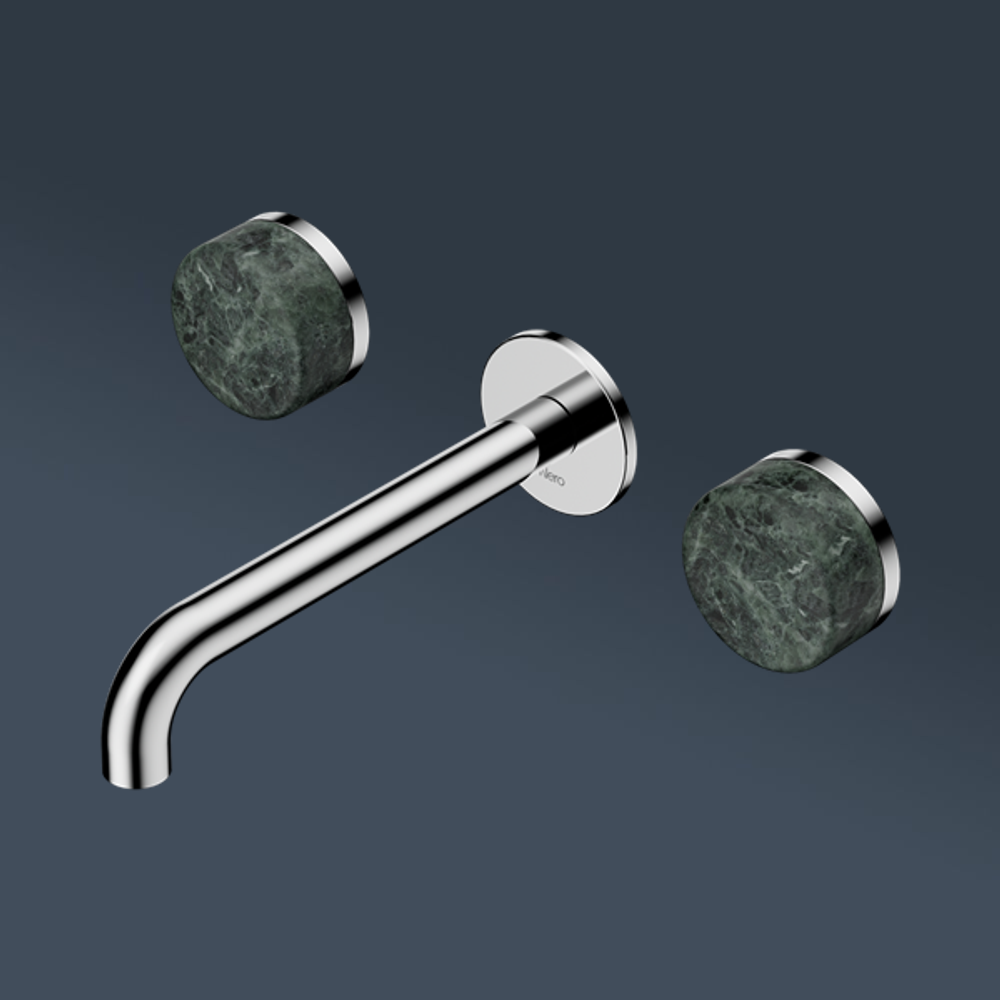 Nero Serenity Wall Basin Set 220mm Spout With Verde Alpi Handle Chrome