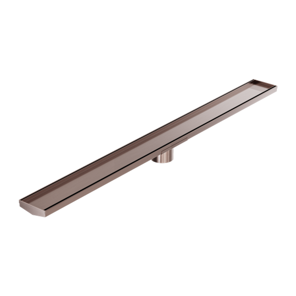 Nero Tile Insert V Channel 1200x106mm Floor Grate 80mm Outlet Brushed Bronze