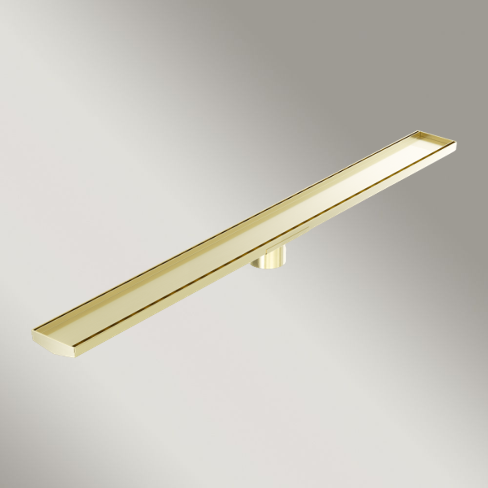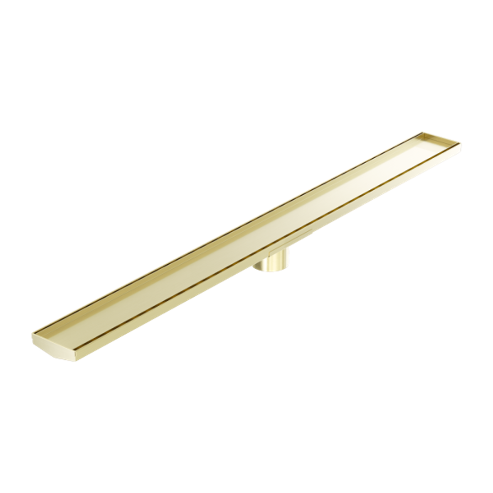 Nero Tile Insert V Channel 1200x106mm Floor Grate 80mm Outlet Brushed Gold