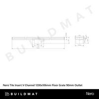 Nero Tile Insert V Channel 1200x106mm Floor Grate 90mm Outlet Brushed Bronze