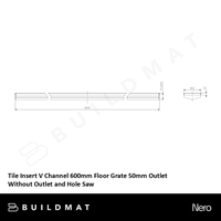 Nero Tile Insert V Channel 600mm Floor Grate 50mm Outlet without Outlet and Hole Saw Brushed Bronze