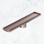 Nero Tile Insert V Channel 600mm Floor Grate 89mm Outlet with Outlet and Hole Saw Brushed Bronze