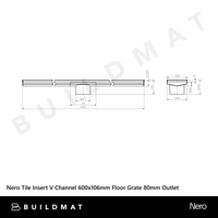 Nero Tile Insert V Channel 600x106mm Floor Grate 80mm Outlet Gunmetal