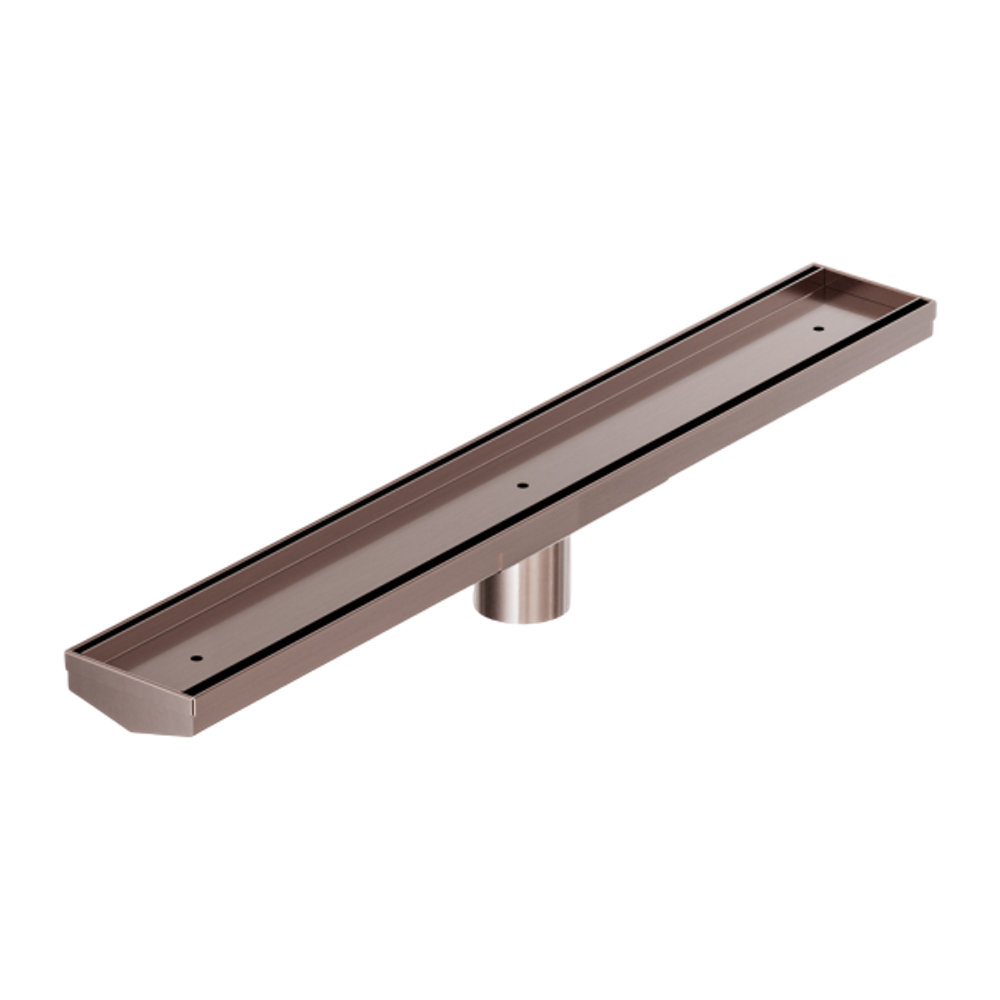 Nero Tile Insert V Channel 600x82mm Floor Grate 50mm Outlet Brushed Bronze