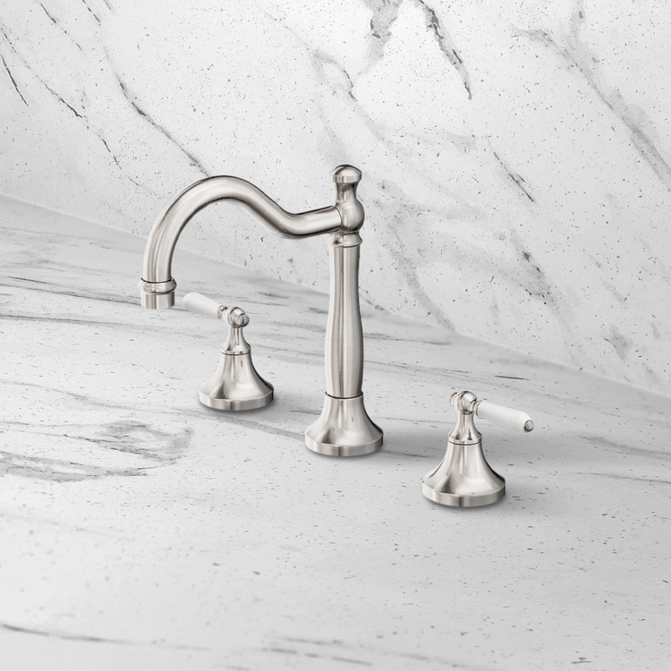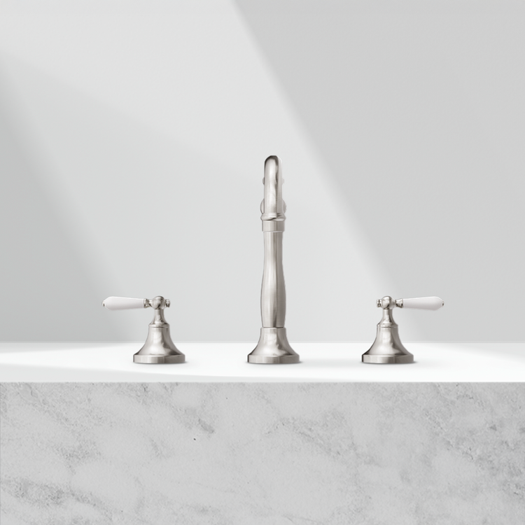 Nero York Basin Set With White Porcelain Lever Brushed Nickel
