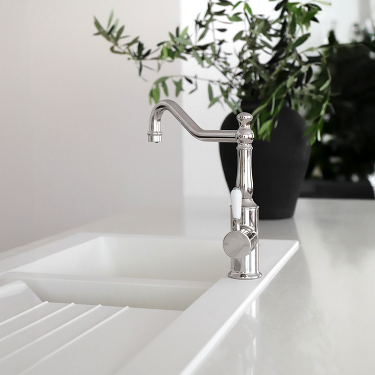 York Kitchen Mixer Hook Spout with White Porcelain Lever