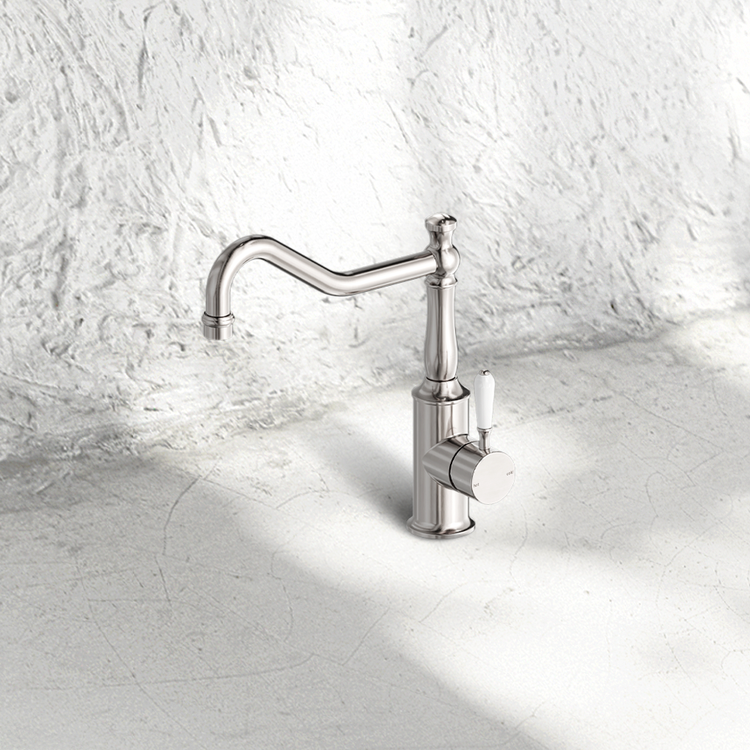 The Nero York Kitchen Mixer Hook Spout with White Porcelain Lever combines European luxury with a curved hook design that instantly catches the eye, adding character while staying elegant and practical. Its solid brass body and ceramic cartridge support long-term use, while the smooth white porcelain lever adds a touch of charm. Available in multiple finishes, it suits both classic and modern kitchen spaces.