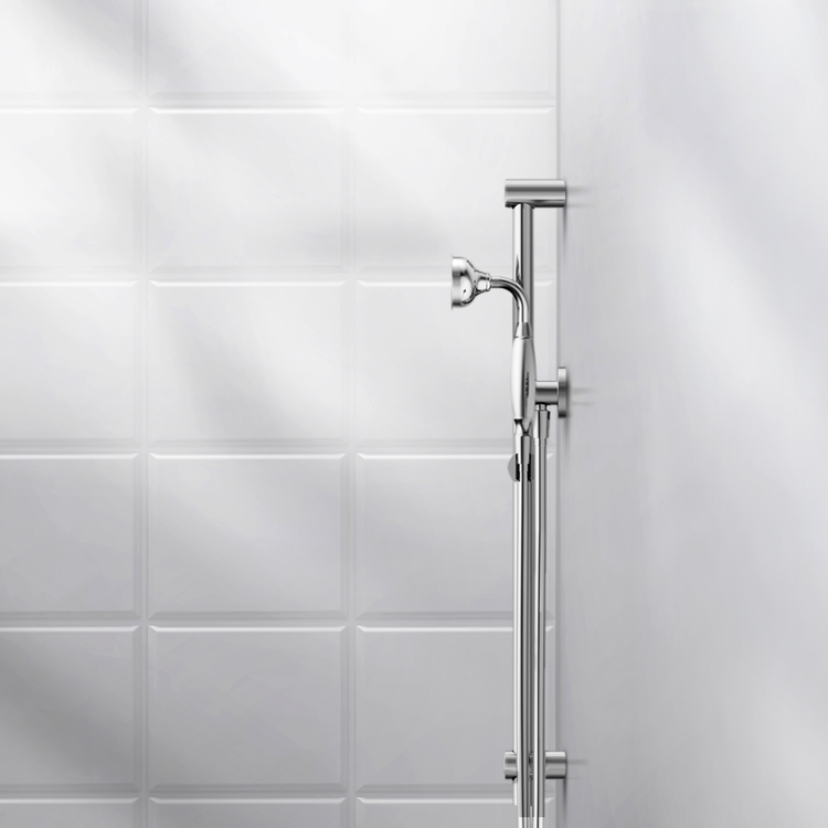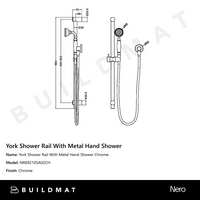 Nero York Shower Rail With Metal Hand Shower Chrome