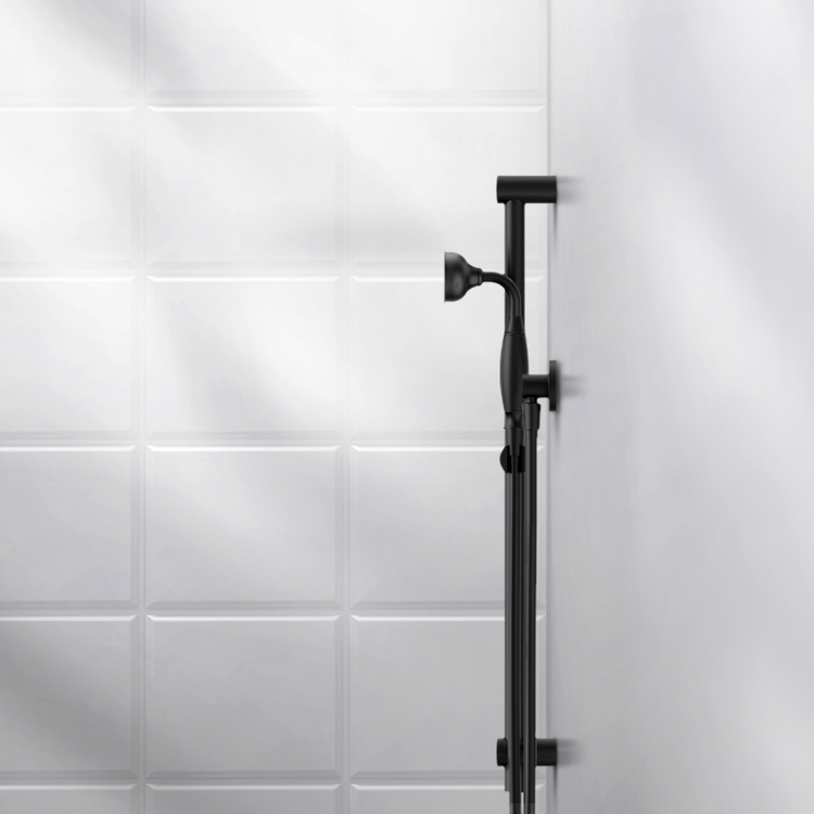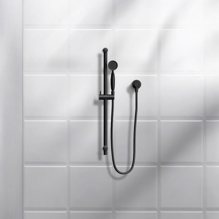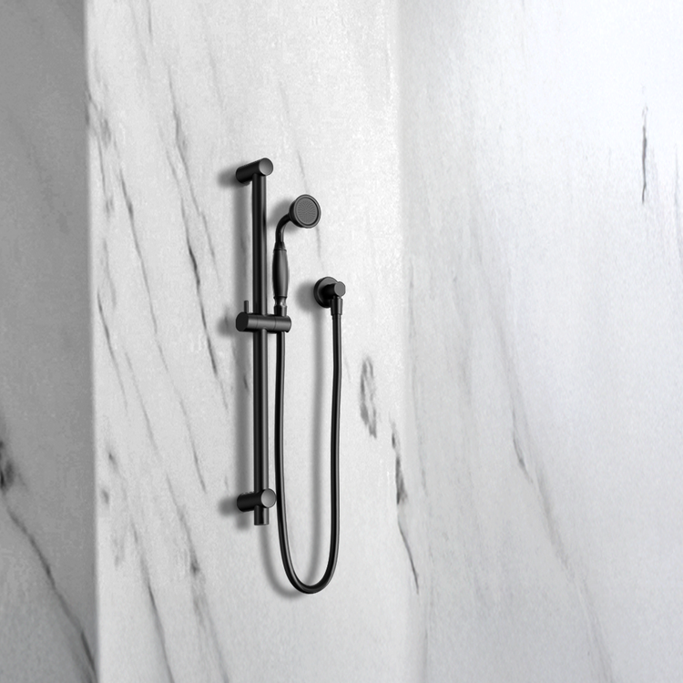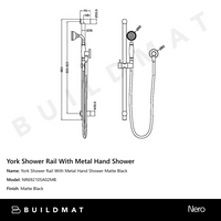 Nero York Shower Rail With Metal Hand Shower Matte Black