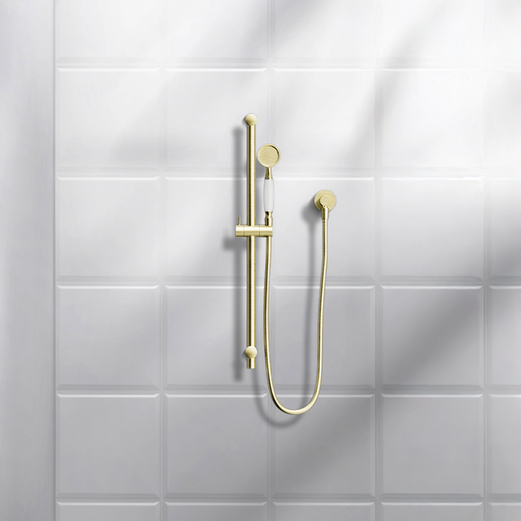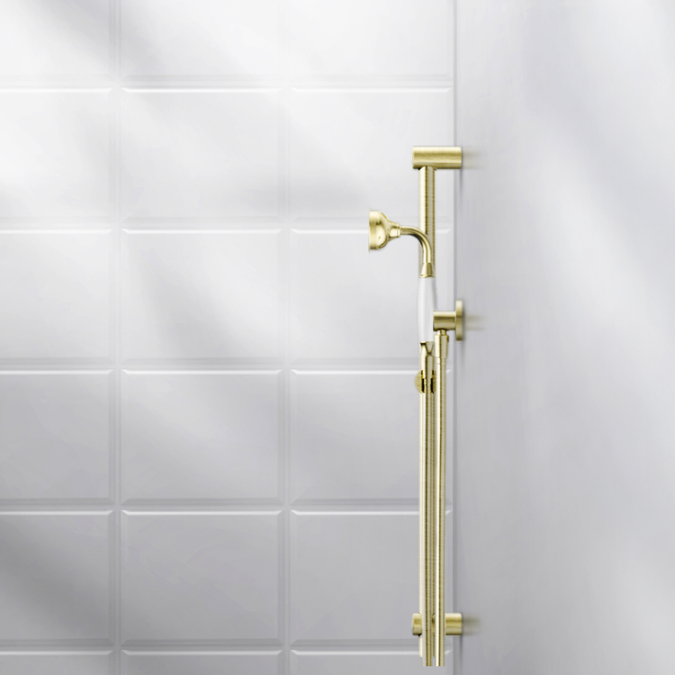 Nero York Shower Rail With White Porcelain Hand Shower Aged Brass