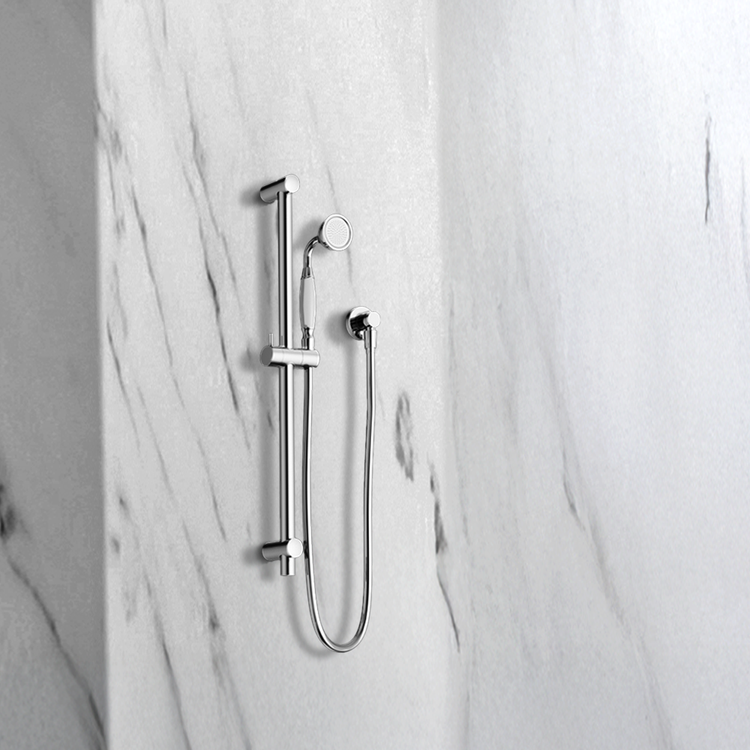 Nero York Shower Rail With White Porcelain Hand Shower Chrome