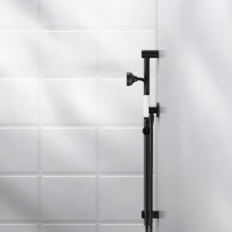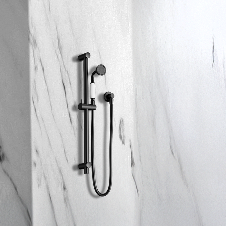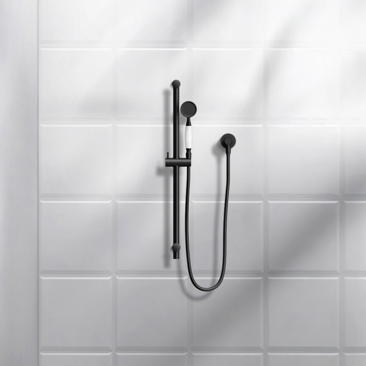 Nero York Shower Rail With White Porcelain Hand Shower Matte Black