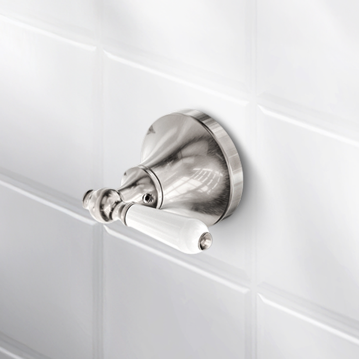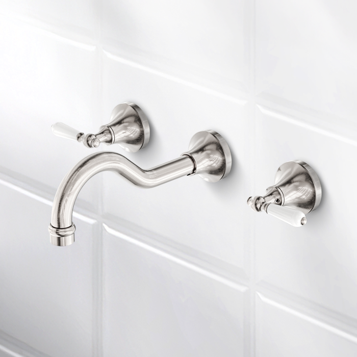 Nero York Wall Basin Set With White Porcelain Lever Brushed Nickel
