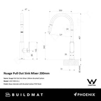 Phoenix Nuage Pull Out Sink Mixer 200mm Lead Free Brushed Carbon