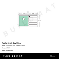 Oliveri Apollo Single Bowl Sink With Right Drainboard Stainless Steel