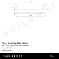 Oliveri Athens Single Towel Rail 600mm Matte Black