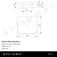 Waste trap not included - refer Matching Products below for options.Product FeatureBasin size: 460mm x 400mm x 140mmBowl capacity: 4.5LMaterial: Vitreous ChinaColour: WhiteInstallation: Wall HungTap holes: 1Overflow: YesWaste outlet: Not... Read more