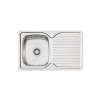 Product Feature Material: 304 grade, 18/10 polished stainless steel (0.8mm thick)Construction: 2 piece, bowl & drainer seam weldedMounting option: TopmountNumber of bowls: 1 (Left Hand Bowl)Drainer: RightFixings: Adjustable clips supplied, sealing... Read more