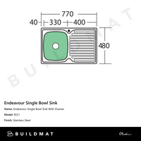 Oliveri Endeavour Single Bowl Sink With Right Drainboard Stainless Steel