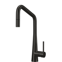 Oliveri Essente Stainless Steel Square Goose Neck Pull Out Mixer Brushed Black