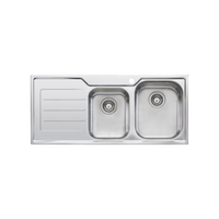 Product Feature Material: 304 grade, 18/10 polished stainless steel (0.8mm thick)Construction: 2 piece, bowls & drainer seam weldedMounting option: TopmountNumber of bowls: 2 (Right Hand Bowls)Drainer: LeftFixings: Adjustable clips and... Read more