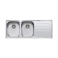 Product Feature Material: 304 grade, 18/10 polished stainless steel (0.8mm thick)Construction: 2 piece, bowls & drainer seam weldedMounting option: TopmountNumber of bowls: 2 (Left Hand Bowls)Drainer: RightFixings: Adjustable clips and... Read more