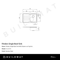Oliveri Flinders Single Bowl Sink With Left Drainboard and Taphole Stainless Steel