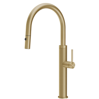 Gessi 316 Meccanica Goose Neck Pull Out Spray Mixer Brushed Brass