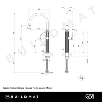 Gessi 316 Meccanica Goose Neck Swivel Mixer Brushed Black
