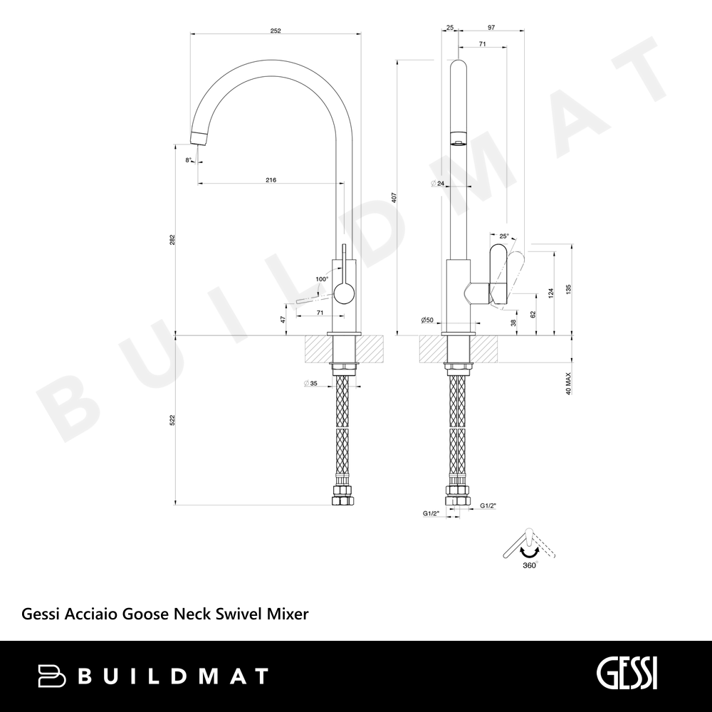 Gessi Acciaio Goose Neck Swivel Mixer Stainless Steel