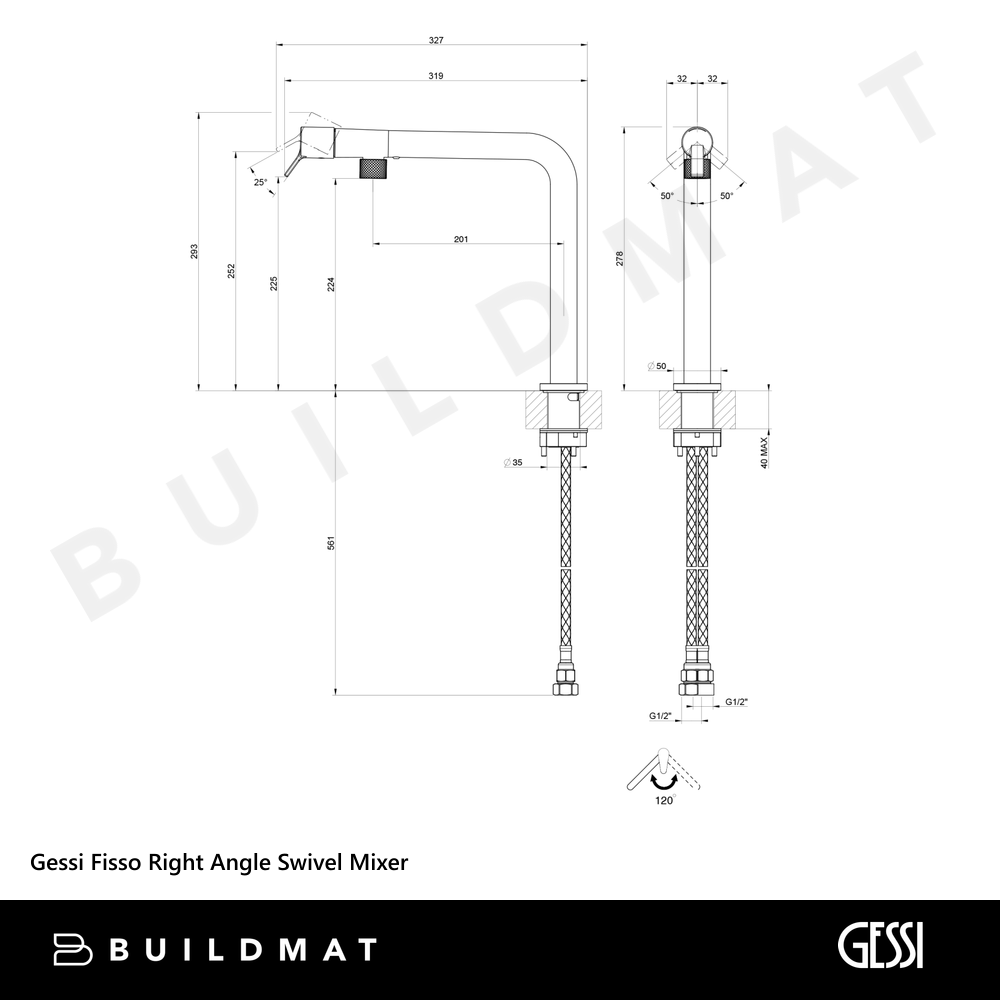 Gessi Fisso Right Angle Swivel Mixer Matte Black