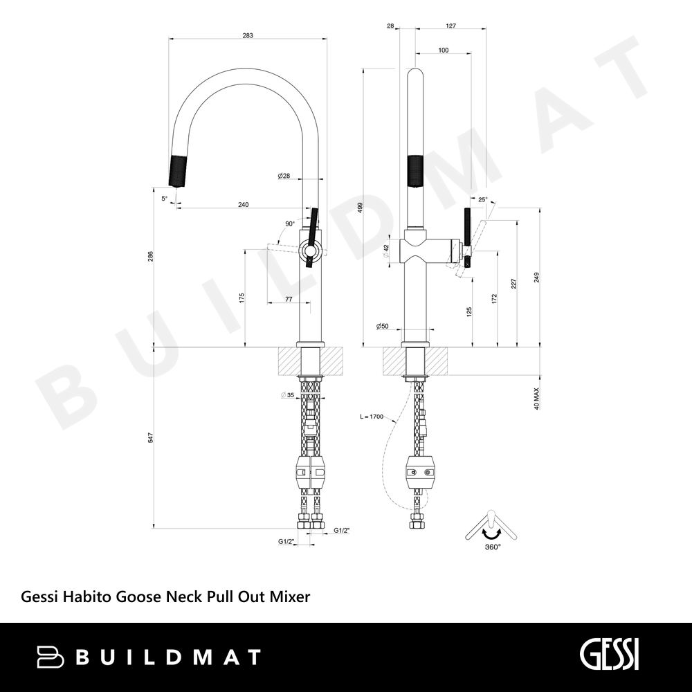 Gessi Habito Goose Neck Pull Out Mixer Matte Black