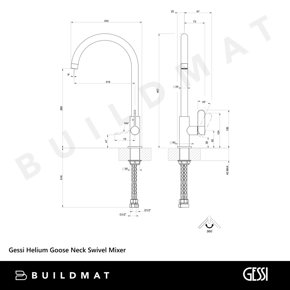 Gessi Helium Goose Neck Swivel Mixer Chrome
