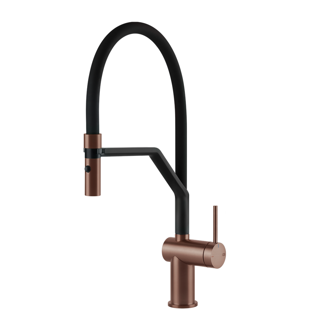 Gessi Inedito Goose Neck Semi-Professional Spray Mixer Brushed Copper