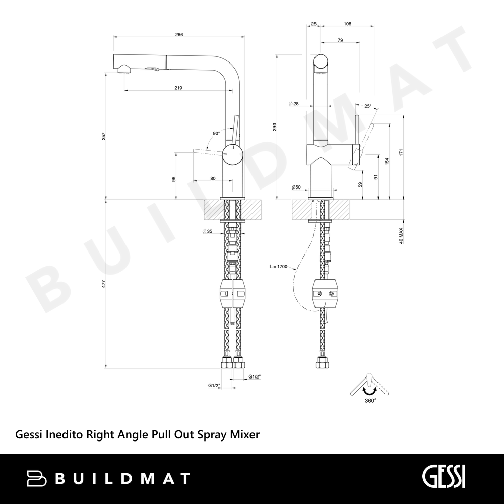 Gessi Inedito Right Angle Pull Out Spray Mixer Matte Black