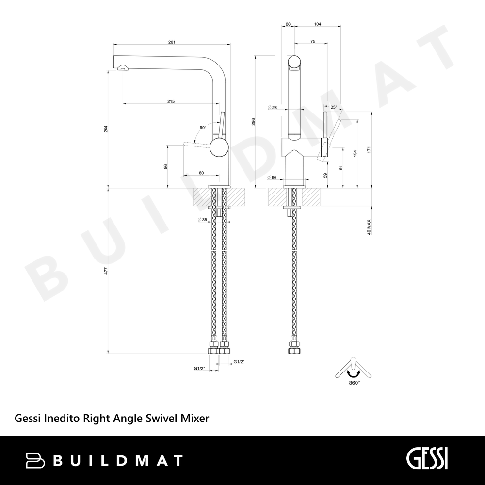Gessi Inedito Right Angle Swivel Mixer Bright Gold