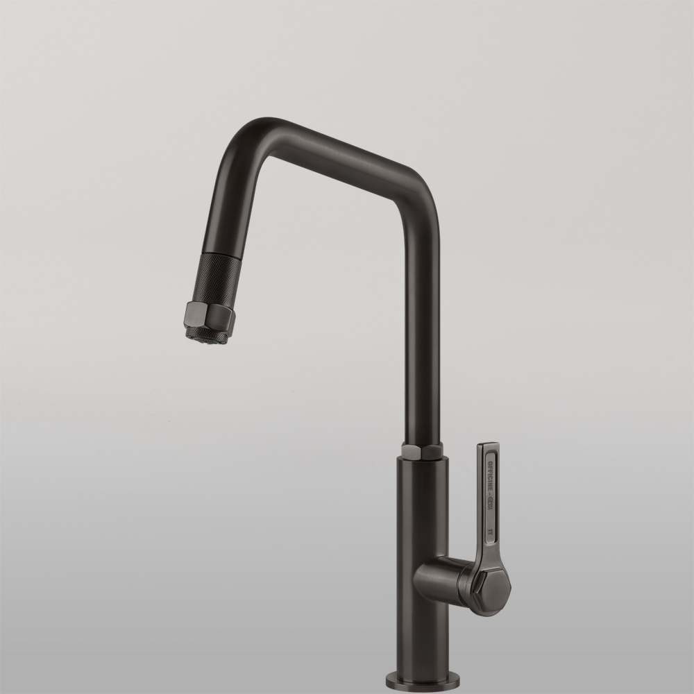 Gessi Officine Square Goose Neck Pull Out Mixer Brushed Black
