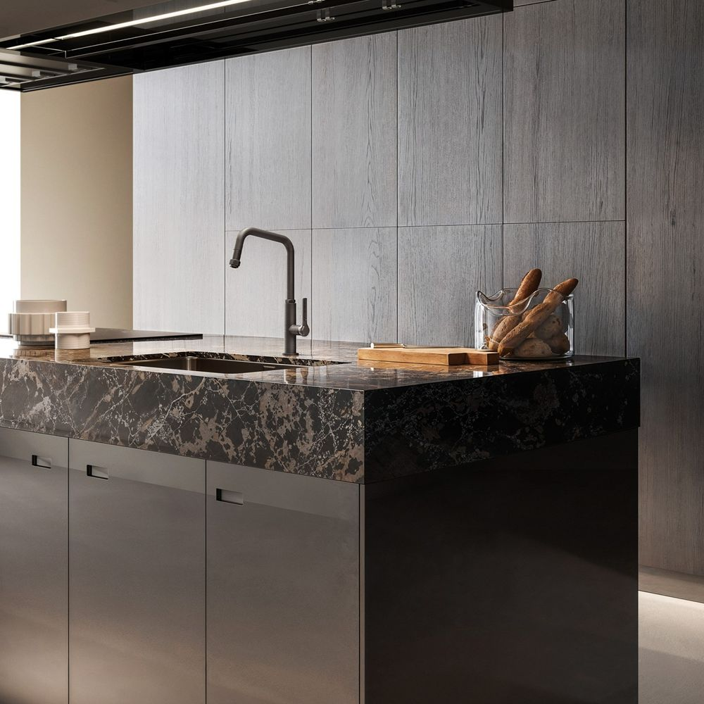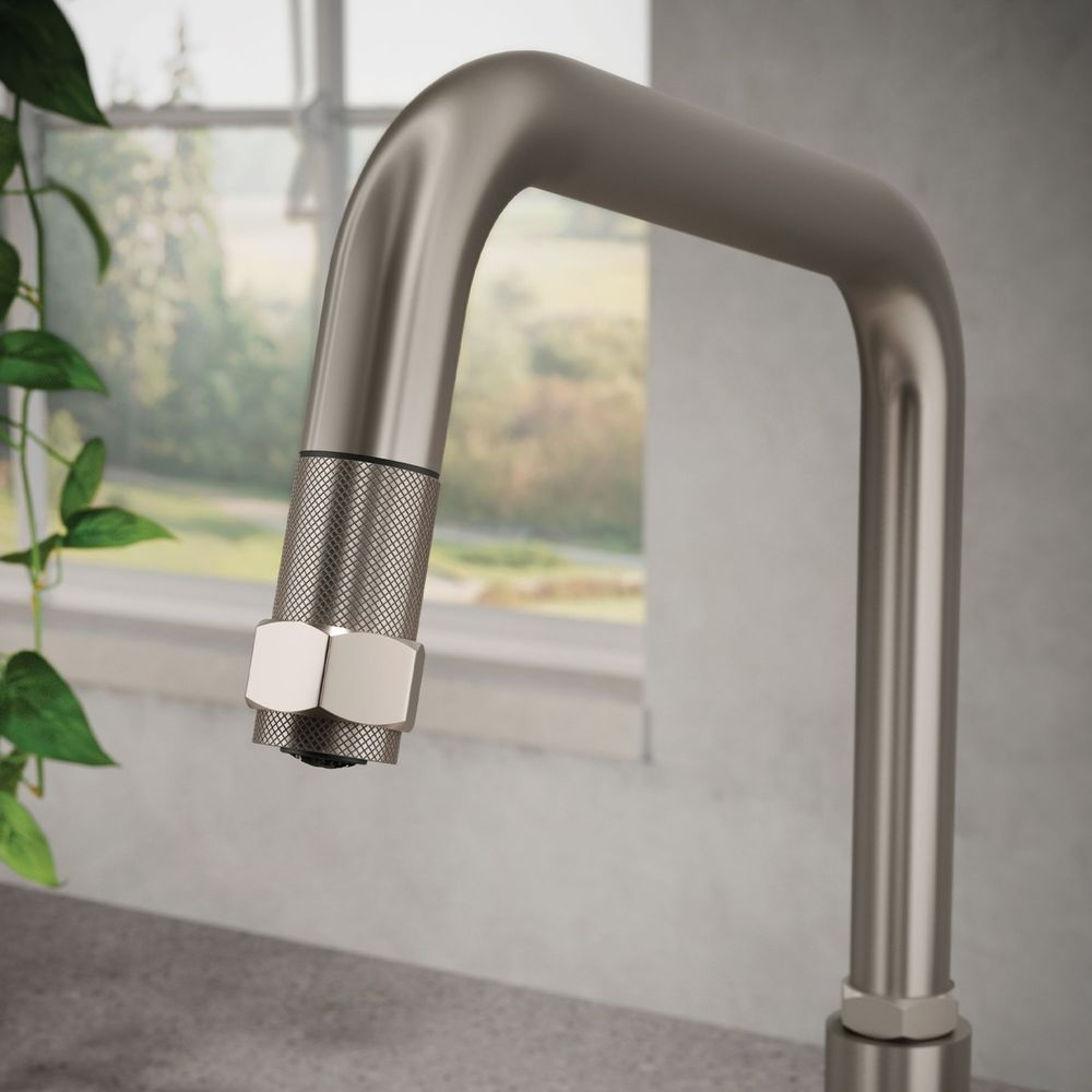 Gessi Officine Square Goose Neck Pull Out Mixer Brushed Nickel