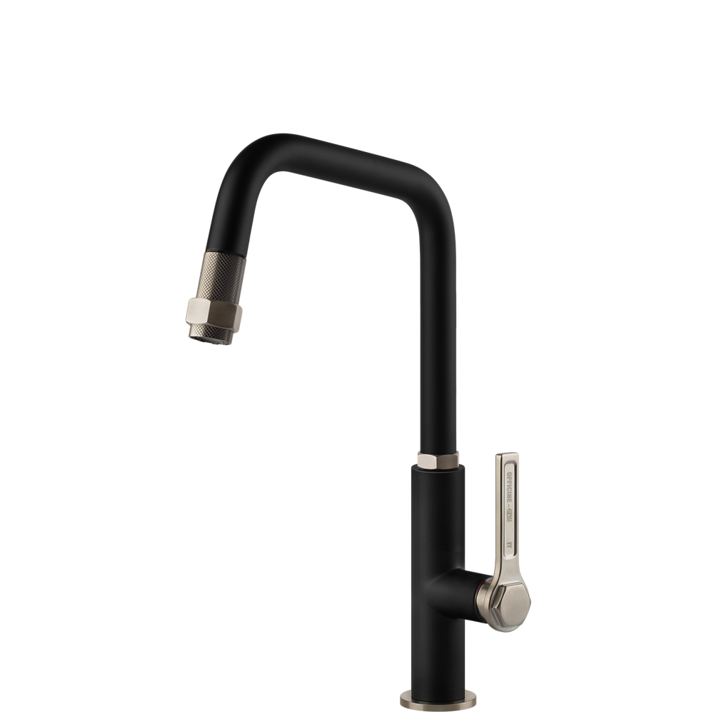 Gessi Officine Square Goose Neck Pull Out Mixer Matte Black