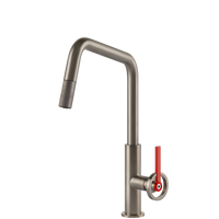 Gessi Officine V Square Goose Neck Pull Out Mixer Brushed Nickel