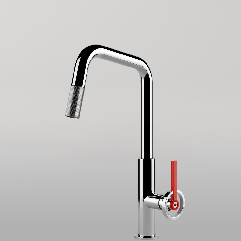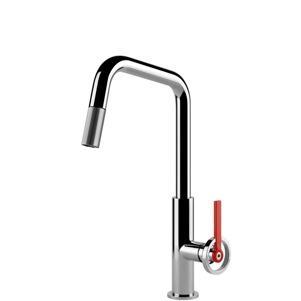 Gessi Officine V Square Goose Neck Pull Out Mixer Chrome