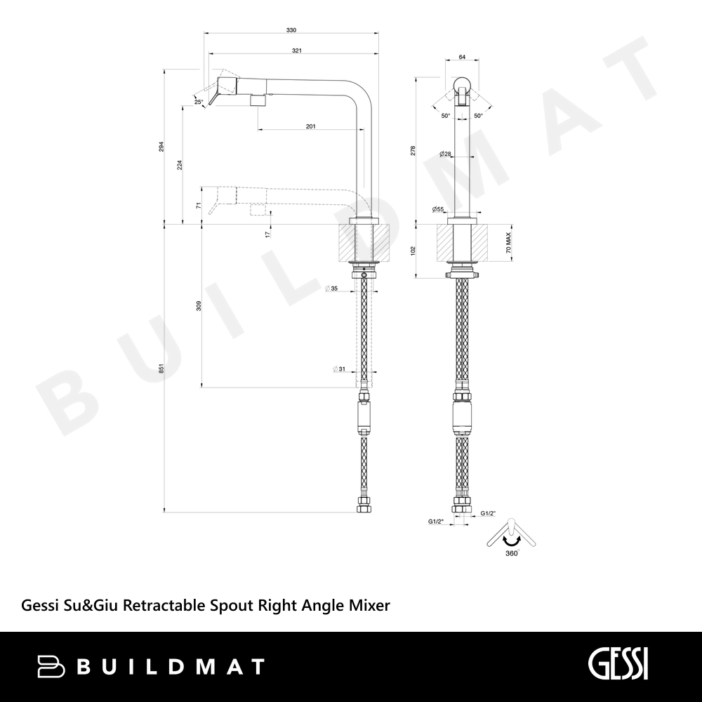Gessi Su&Giù Retractable Spout Right Angle Mixer Chrome