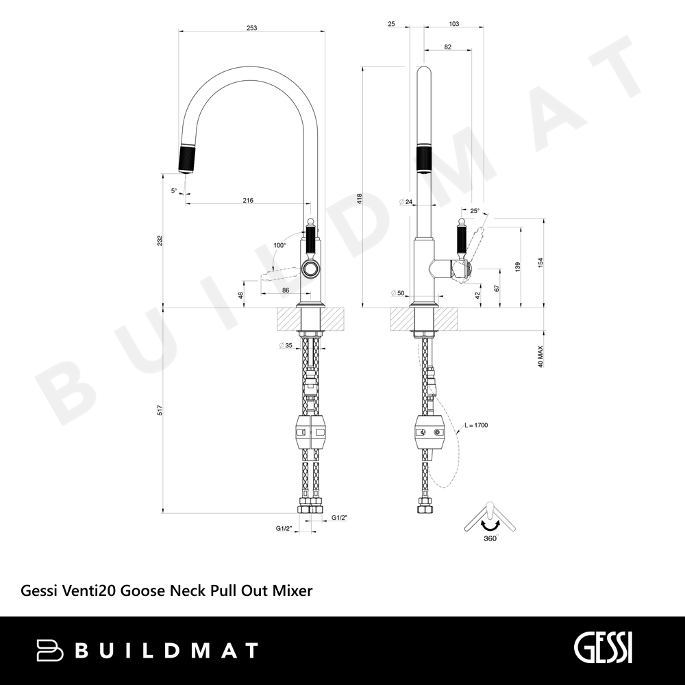 Gessi Venti20 Goose Neck Pull Out Mixer Chrome