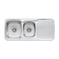 Product Feature Material: 304 grade, 18/10 polished stainless steel (0.8mm thick)Construction: 2 piece, bowls & drainer seam weldedMounting option: TopmountNumber of bowls: 2 (left hand bowls)Drainboard: RightFixings: Adjustable clips and... Read more
