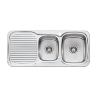 Product Feature Material: 304 grade, 18/10 polished stainless steel (0.8mm thick)Construction: 2 piece, bowls & drainer seam weldedMounting option: TopmountNumber of bowls: 2 (Right hand bowls)Drainer: LeftFixings: Adjustable clips and... Read more