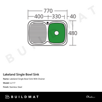 Oliveri Lakeland Single Bowl Sink With Left Drainboard Stainless Steel
