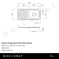 Oliveri Martini Single Bowl Sink With Left Drainboard Stainless Steel