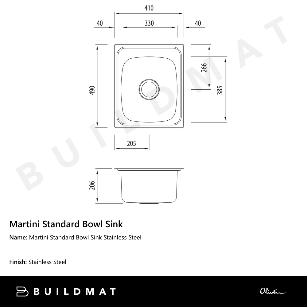 Oliveri Martini Standard Bowl Sink Stainless Steel